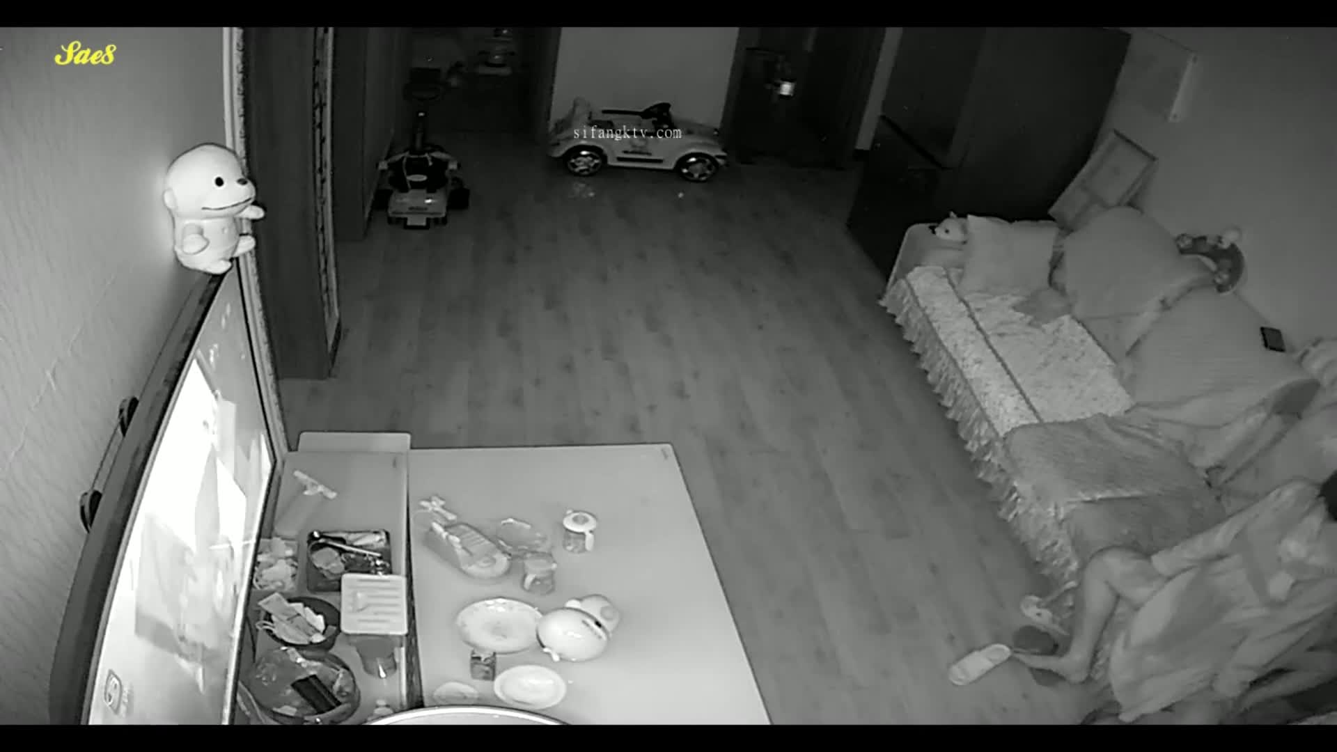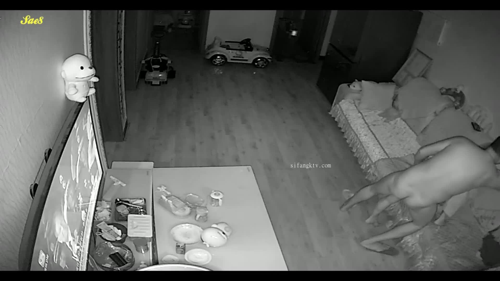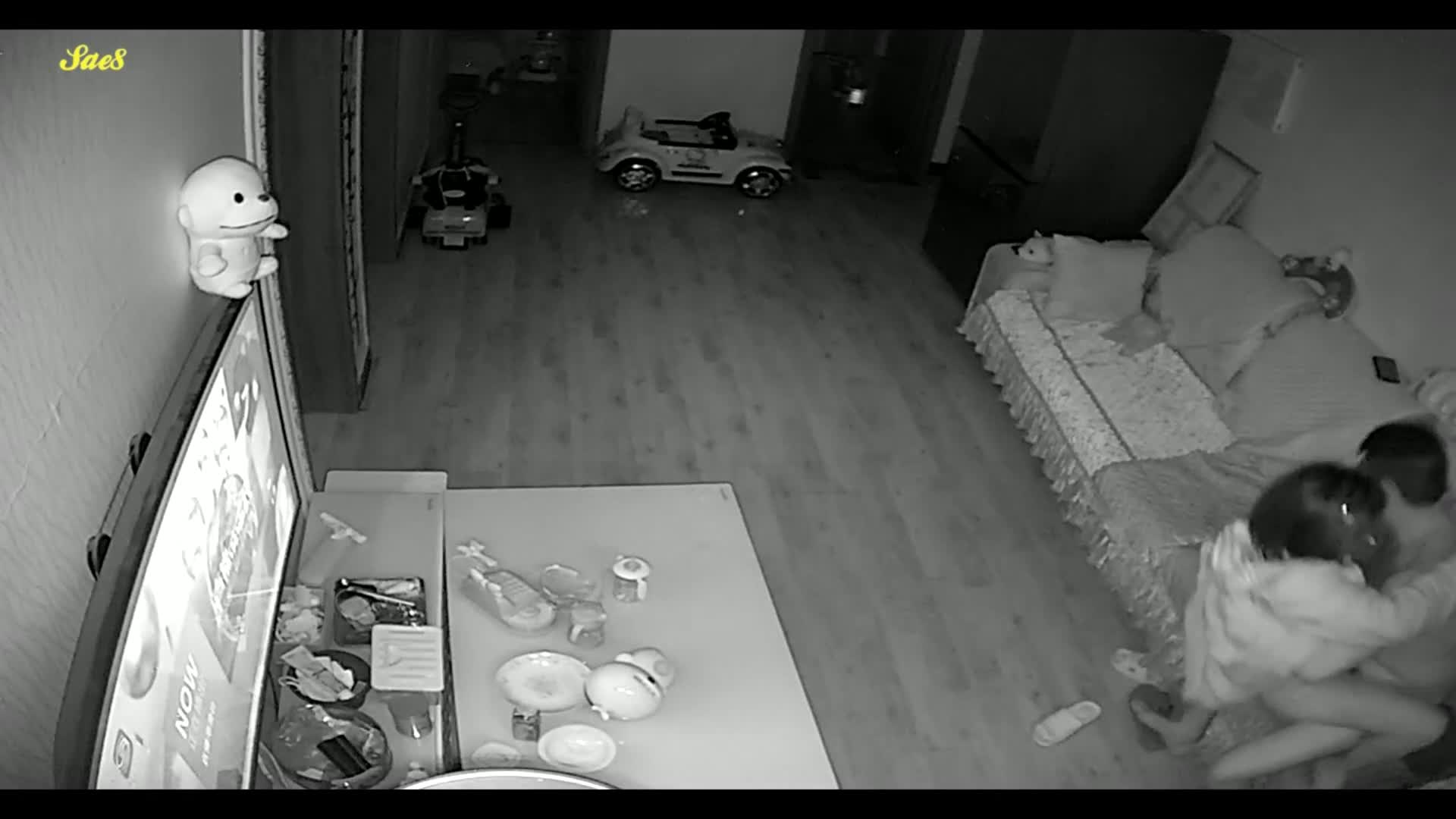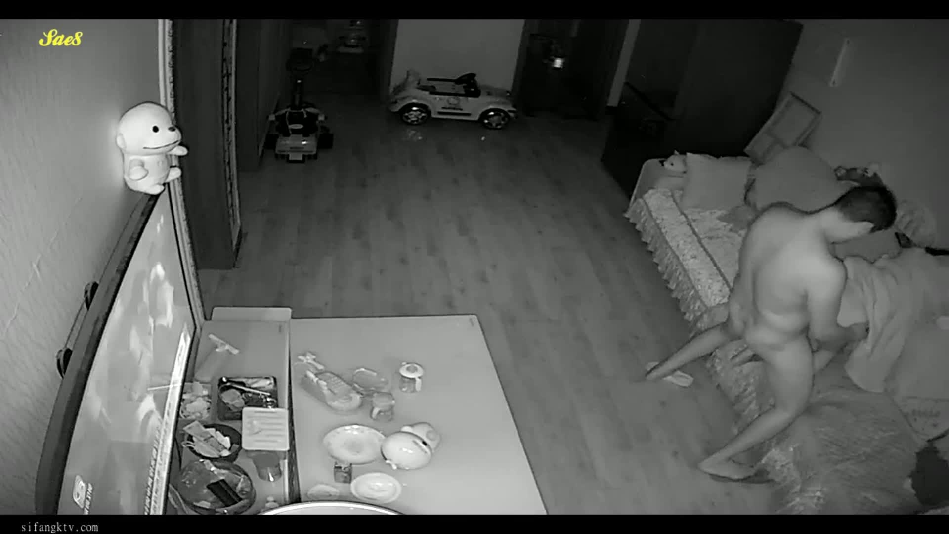 摄像头偷拍等孩子睡觉了夫妻在客厅摸黑做爱。