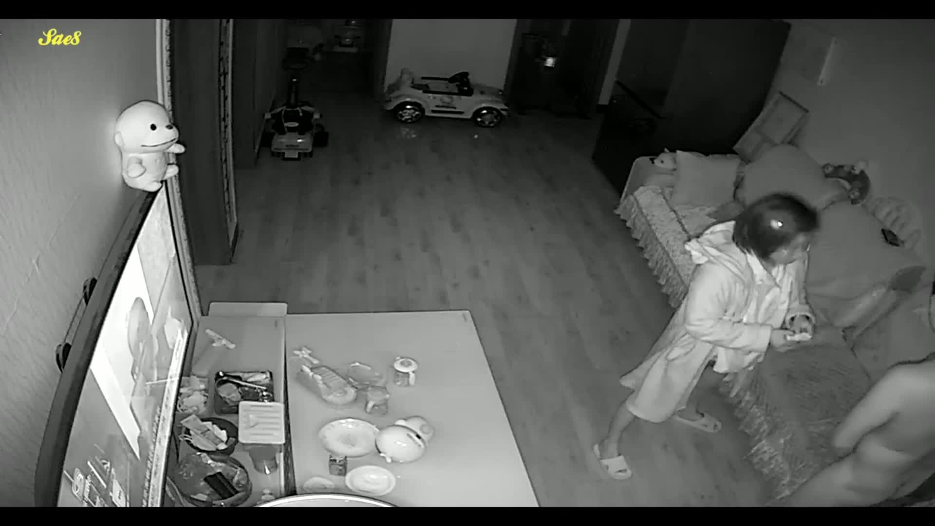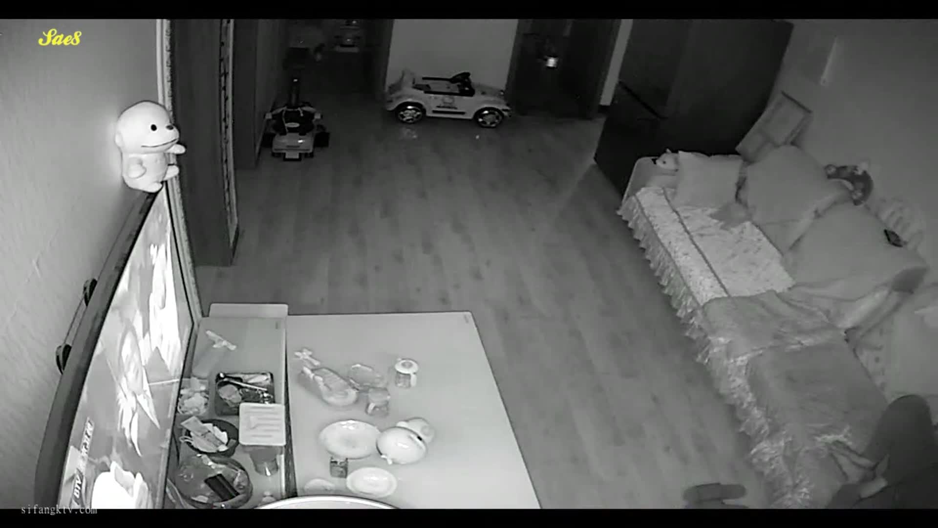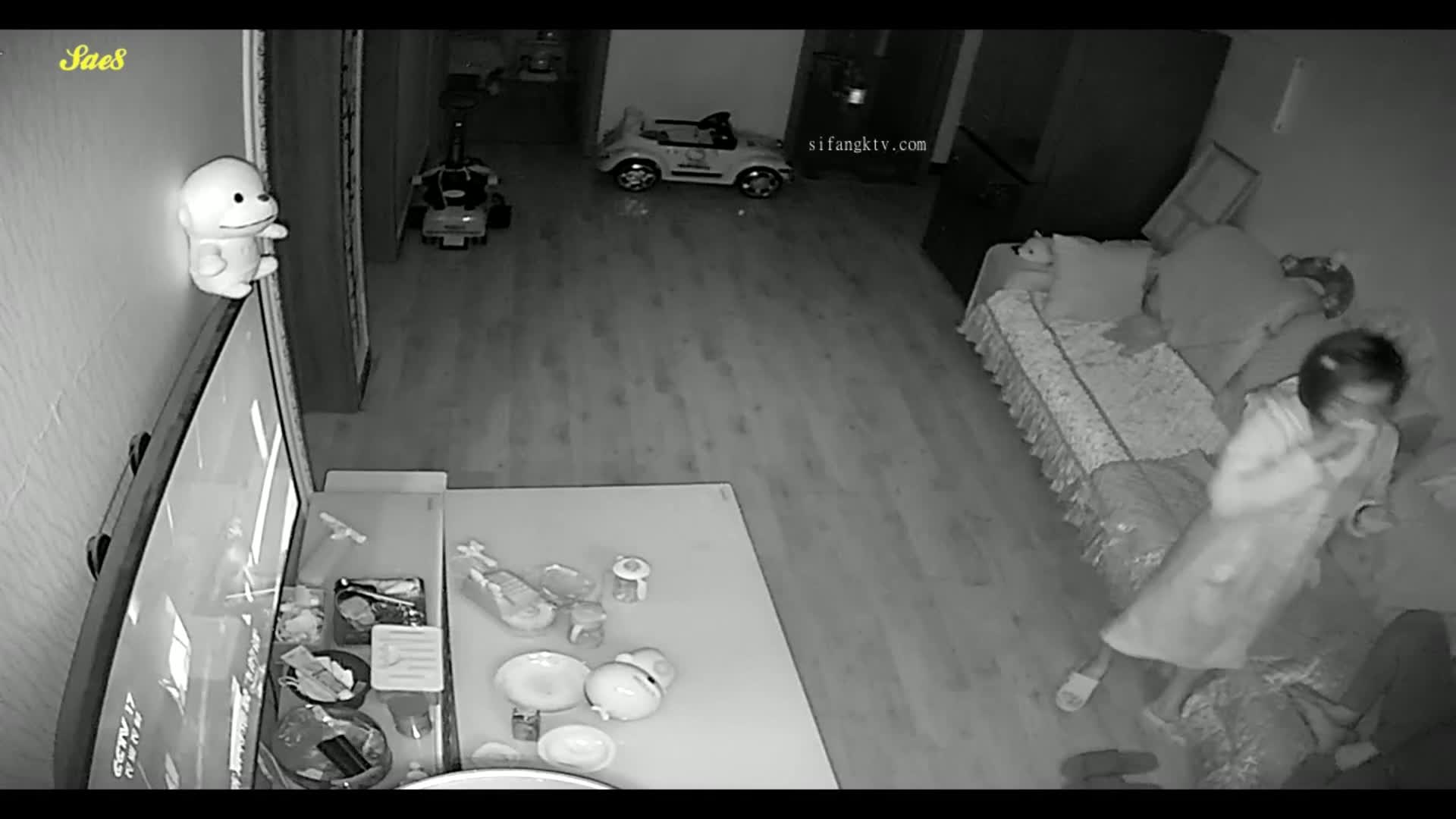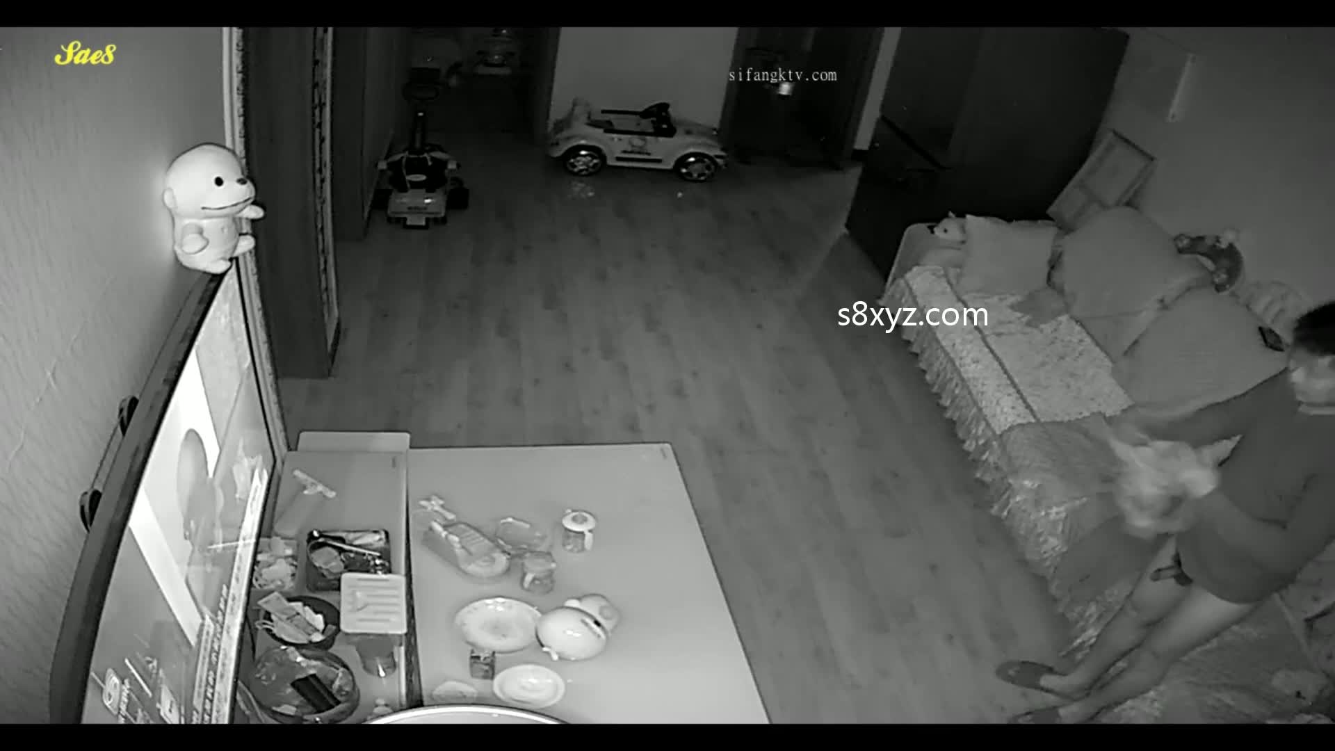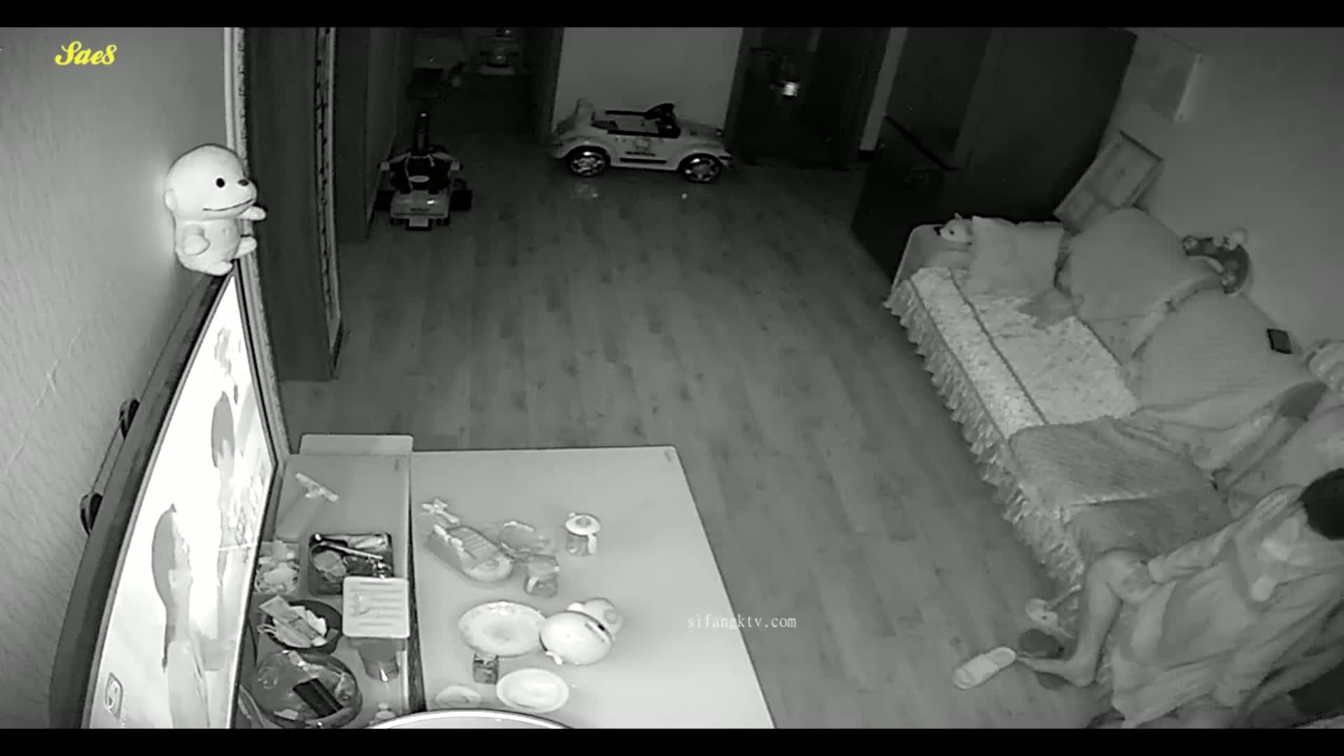摄像头偷拍等孩子睡觉了夫妻在客厅摸黑做爱。