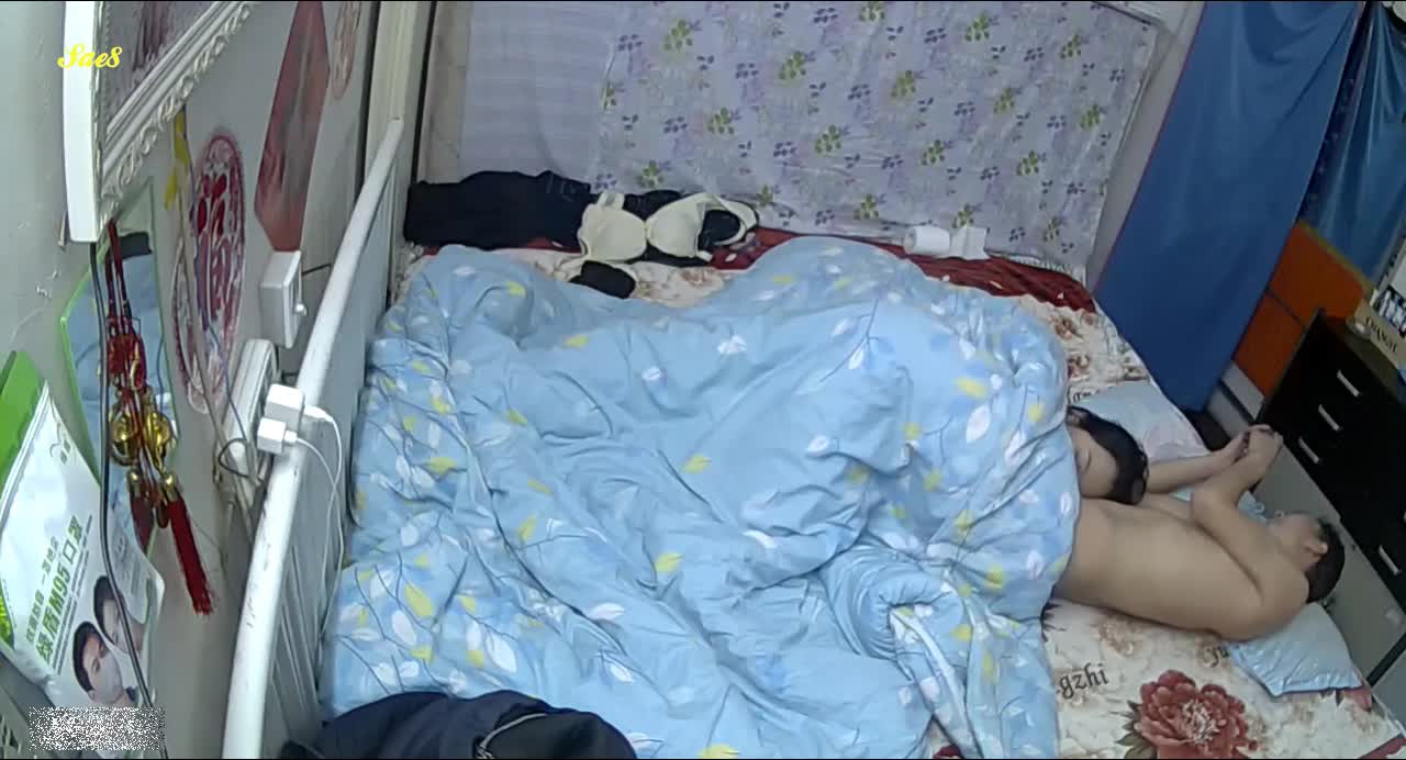 家庭摄像头云盘泄密八字奶新婚少妇和老公睡前运动玩的花。