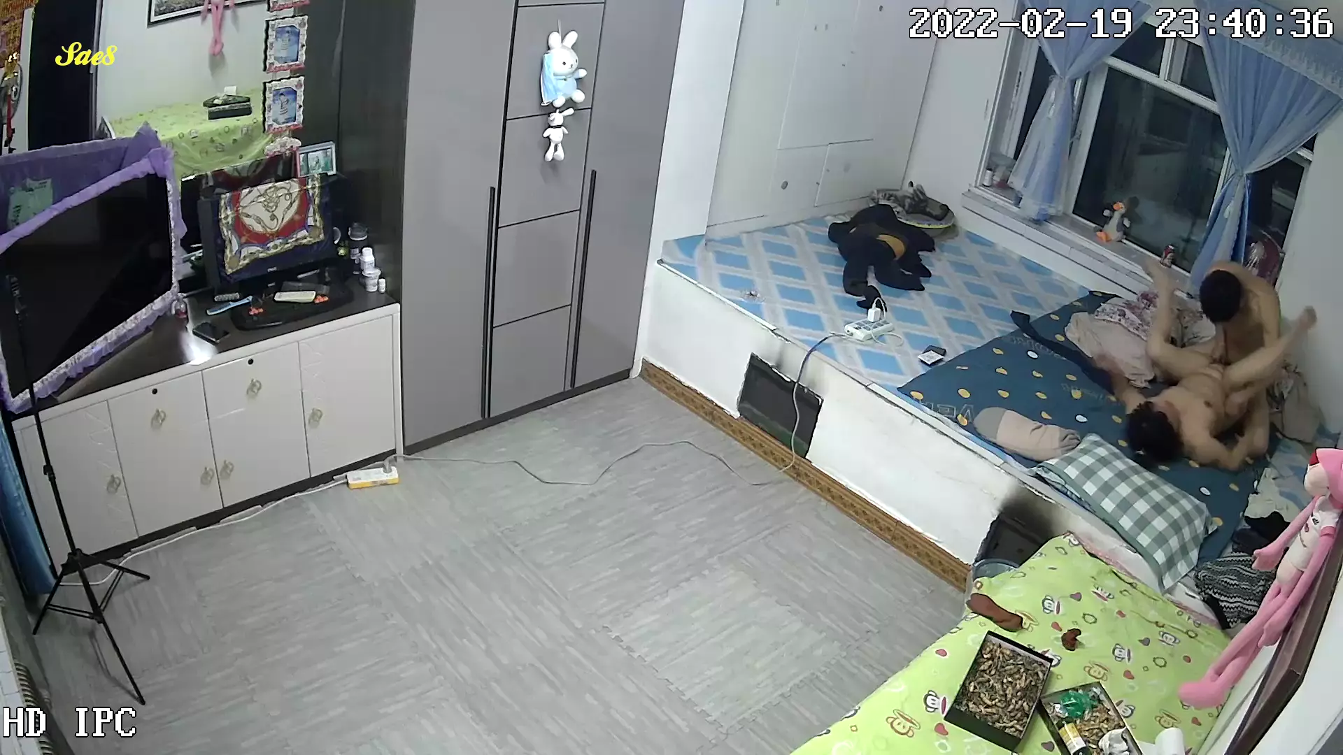 黑客破解家庭网络摄像头偷拍睡东北大炕年轻夫妻晚上做爱发现忘记关摄像头了赶紧用毛巾去盖。